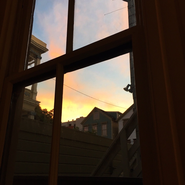 He peeked out the window to check that his request for some color in the sky that evening had come true.